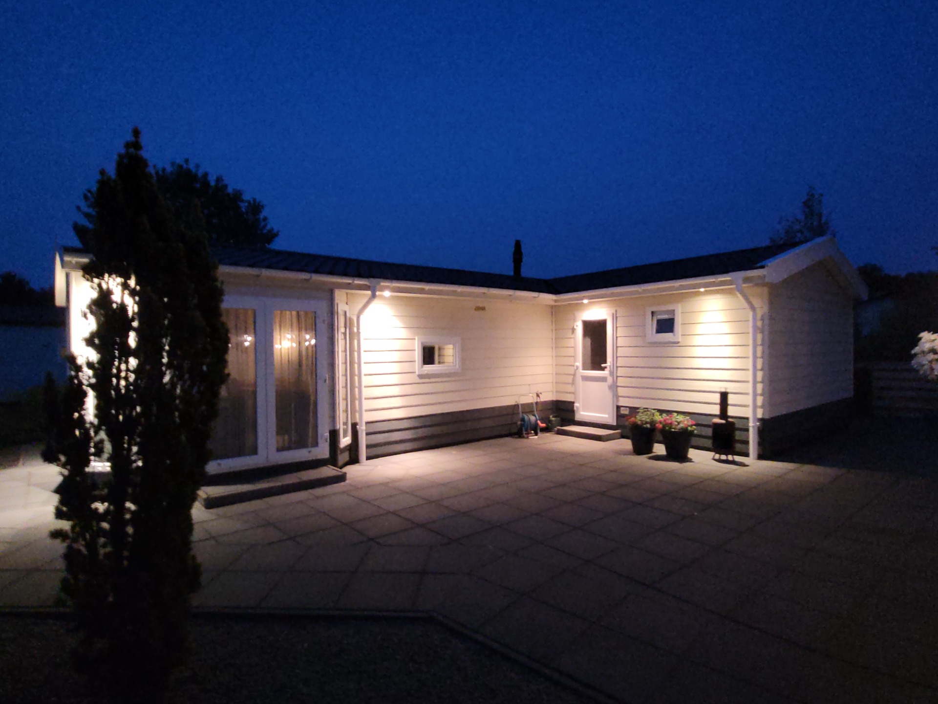 De chalet zelf beschikt over een enorm terras waar u onder de grote overkapping kunt genieten van de zon en waar kinderen alle ruimte hebben om te spelen. Tevens is er een schuurtje waar u evt. veilig uw fietsen in kunt plaatsen. De chalet staat op een hoekkavel waardoor u veel privacy hebt op het terras